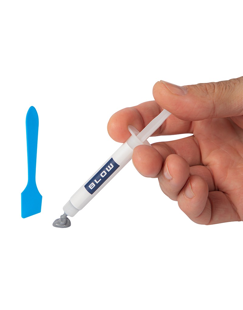 Pasta termoprzewodząca o wysokiej skuteczności przewodzenia ciepła i niskiej oporności termicznej. Pasta nie przewodzi prądu, nie wysycha, nie ulega korozji i nie wymaga procesu wygrzewania (optymalna przewodność cieplna od pierwszego użycia). Wygodna strzykawka umożliwia wielokrotne i łatwe nakładanie pasty. W opakowaniu znajduję się także dodatkowa łopatka do rozprowadzenia pasty.