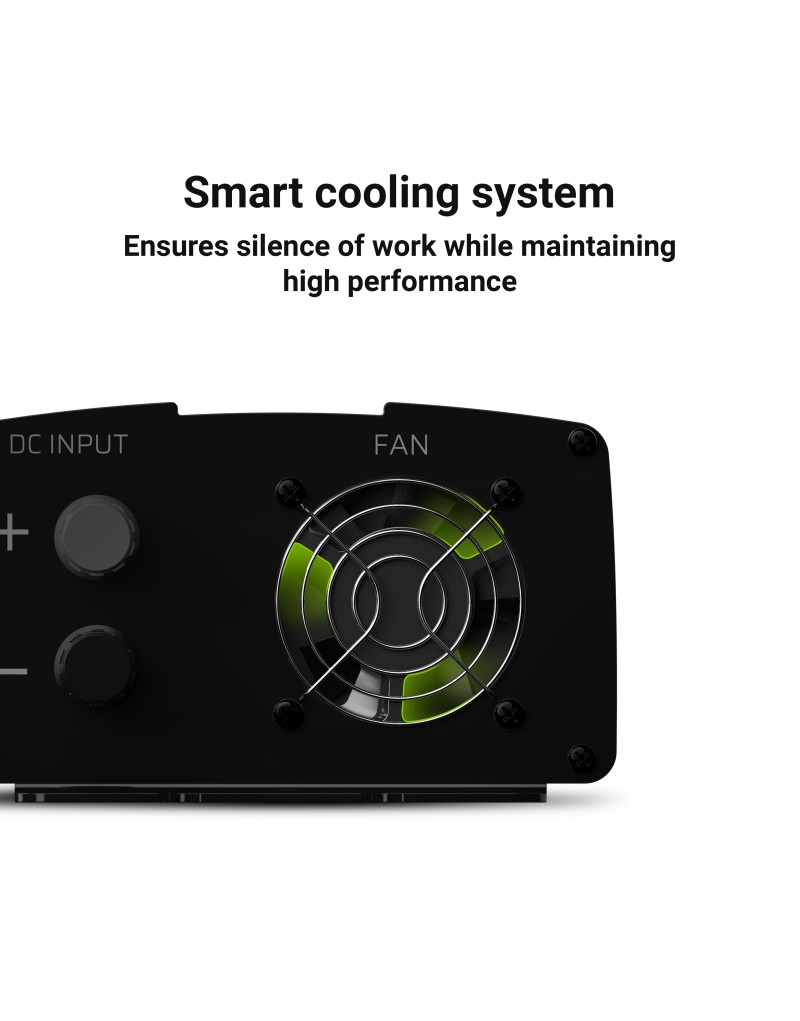 Nad prawidłową temperaturą urządzenia czuwa inteligentny wentylator, który automatycznie włącza się gdy temperatura pracy przekracza dozwoloną. Dzięki wykonaniu z najwyższej jakości materiałow oraz perfekcyjnemu dopasowaniu do obudowy, zapewni bezkompromisową ciszę zachowując przy tym wysoką wydajność.