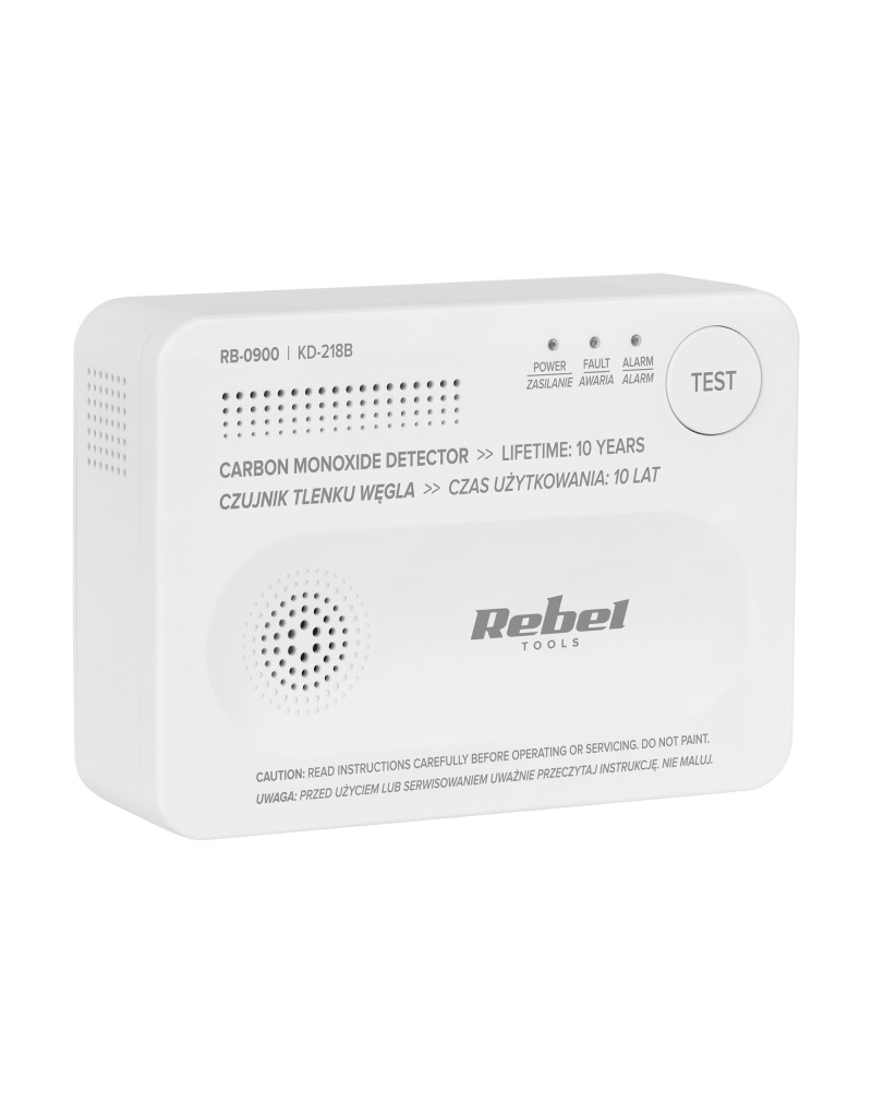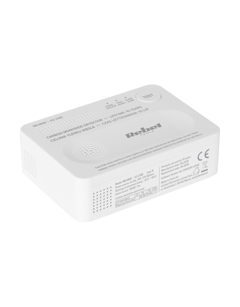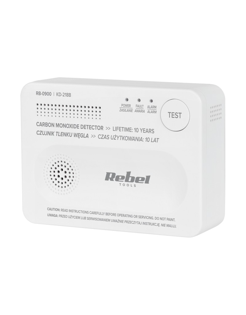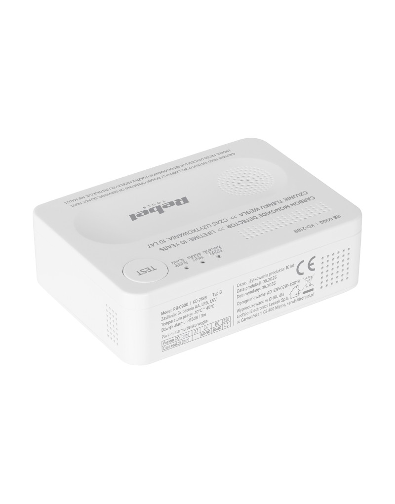 Czujnik czadu Rebel zasilany jest trzema bateriami AA, które zapewniają nawet do 10 lat niezawodnego działania sensora. Urządzenie automatycznie powiadamia o niskim poziomie energii, emitując wyraźny sygnał dźwiękowy i świetlny. Dzięki temu masz pewność, że czujnik zawsze działa skutecznie i nieprzerwanie chroni Twoich bliskich przed tlenkiem węgla.