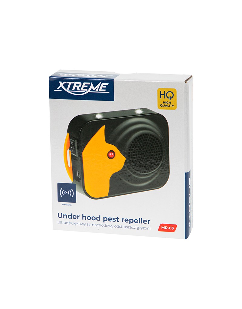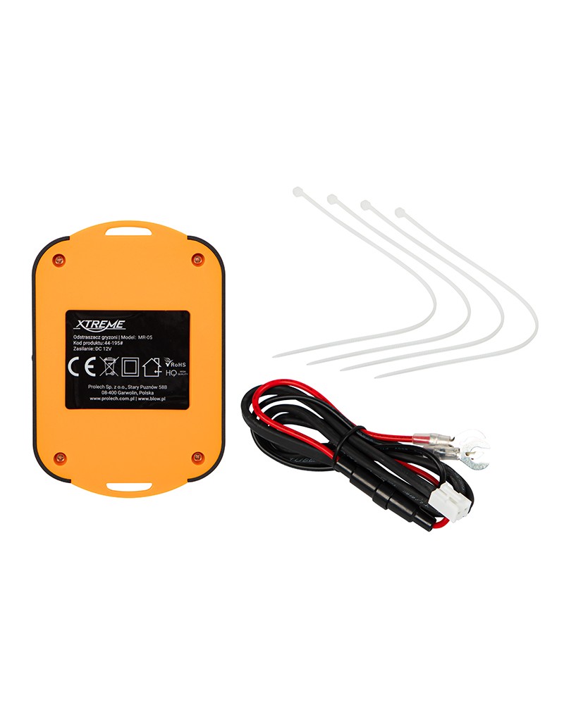 Urządzenie odstrasza dźwiękowo oraz wizualnie szkodniki takie jak myszy, szczury, kuny, łasice, wiewiórki i inne oraz psy i koty. Świetnie sprawdzi się w każdym pojeździe wyposażonym w akumulator 12V. Produkt wysyła sygnały ultradźwiękowe o zmiennej częstotliwości skutecznie odstraszając szkodniki. Posiada 3 etapowy tryb pracy,3 diody LED oraz głośnik emitujący ultradźwięki. Efektywny zasięg odstraszacza to 45m².