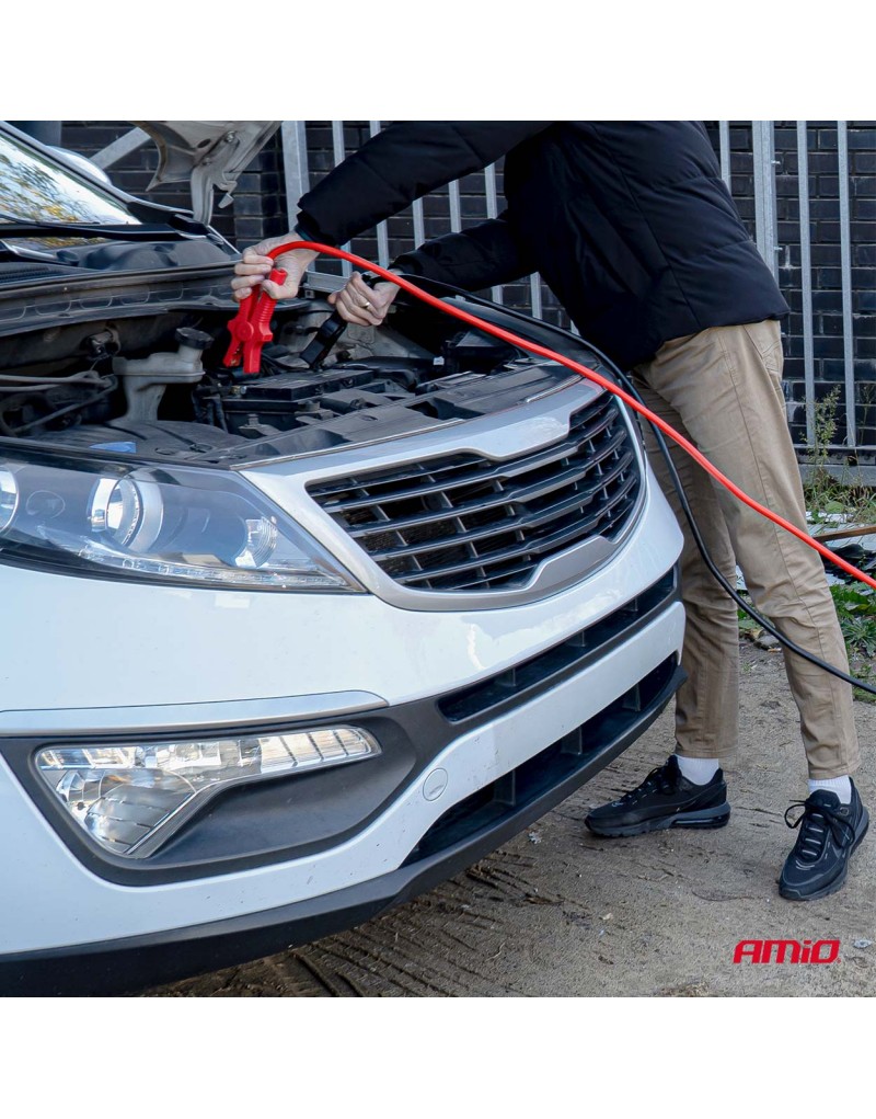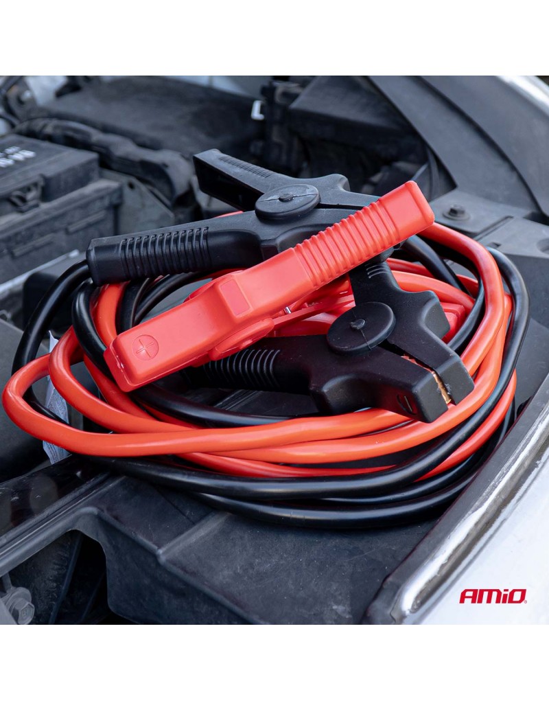 Przewody wykonane są z elastycznej linki miedziowanej o przekroju 54 mm² i średnicy 13,5 mm, co zapewnia minimalny opór i skuteczne przewodzenie prądu nawet w trudnych warunkach. Solidne, izolowane szczęki z mocnymi sprężynami gwarantują pewne i stabilne połączenie z biegunami akumulatora.