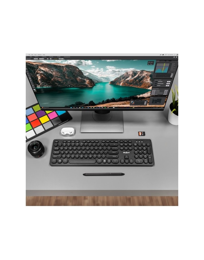 Klawiatura zapewnia stabilne, bezprzewodowe połączenie z komputerem bez opóźnień i zakłóceń. Wystarczy podłączyć odbiornik USB i gotowe – nie ma potrzeby instalowania dodatkowego oprogramowania. Idealne rozwiązanie dla osób ceniących mobilność i porządek na biurku.