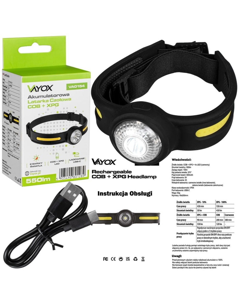 Dzięki wbudowanemu akumulatorowi o pojemności 600mAh, latarka VA0154 zapewnia ponad 7 godzin nieprzerwanej pracy. Ładowanie jest proste i wygodne - korzystasz z dołączonego do zestawu kabla USB-C, co oznacza, że możesz ładować ją tym samym sposobem, co swój telefon komórkowy, zarówno w domu, jak i w podróży. Czas ładowania wynosi maksymalnie 2 godziny.