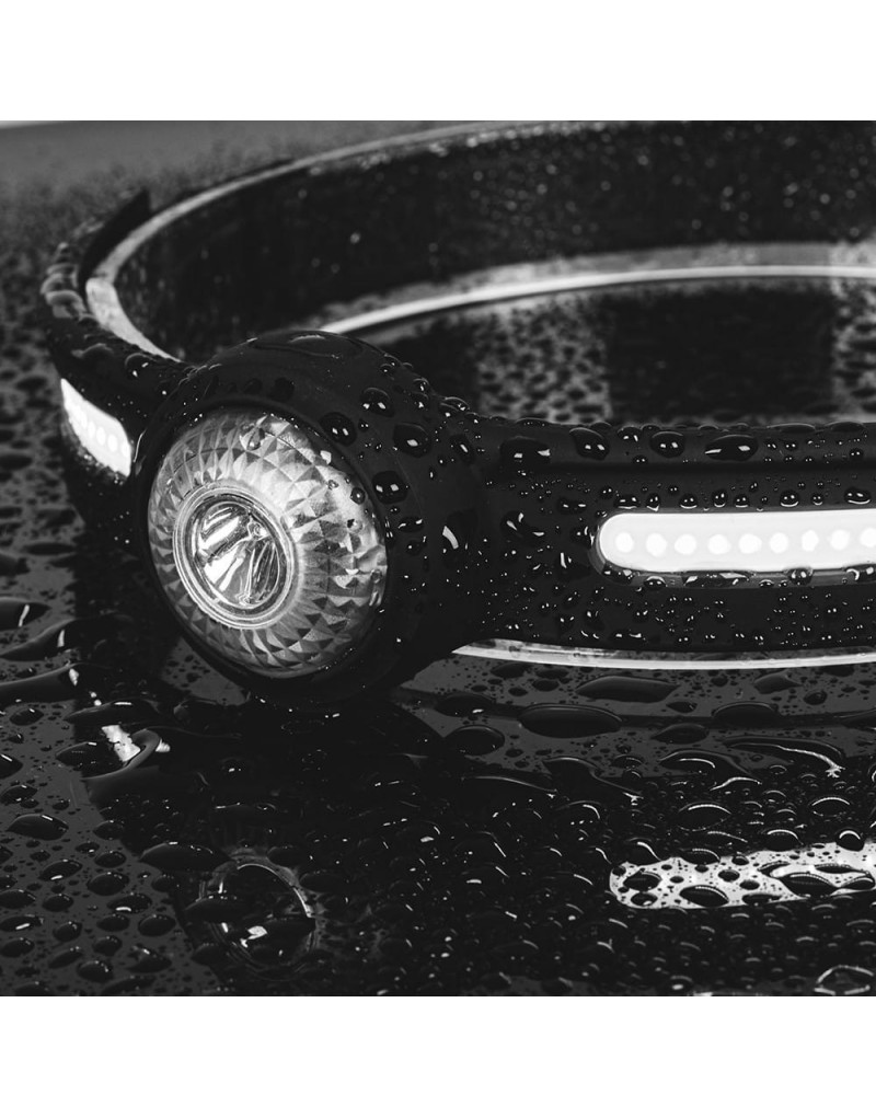 Waga latarki to tylko 62g a całość po złożeniu mieści się w dłoni, elastyczna obudowana zapobiega uszkodzeniom mechanicznym.