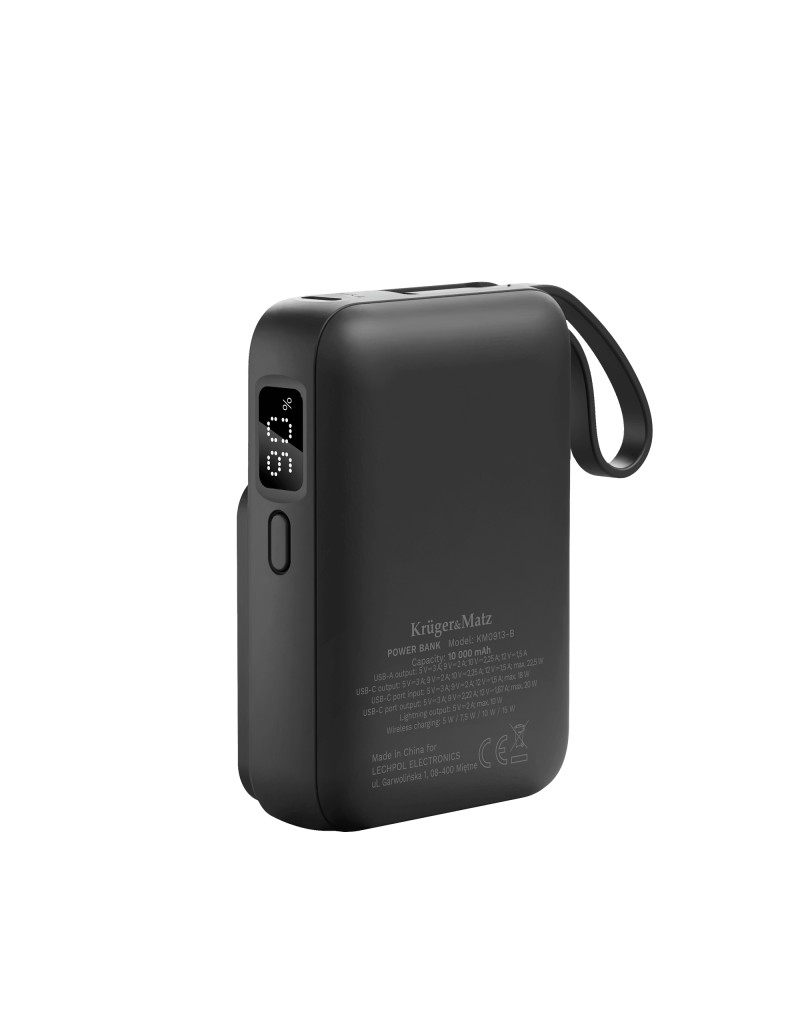 KM0913 to power bank, który wyróżnia się wysoką pojemnością 10 000 mAh, co pozwala na wielokrotne naładowanie smartfona lub innych urządzeń mobilnych. Dzięki temu możesz dłużej cieszyć się pełną funkcjonalnością swojego sprzętu bez konieczności szukania gniazdka elektrycznego.