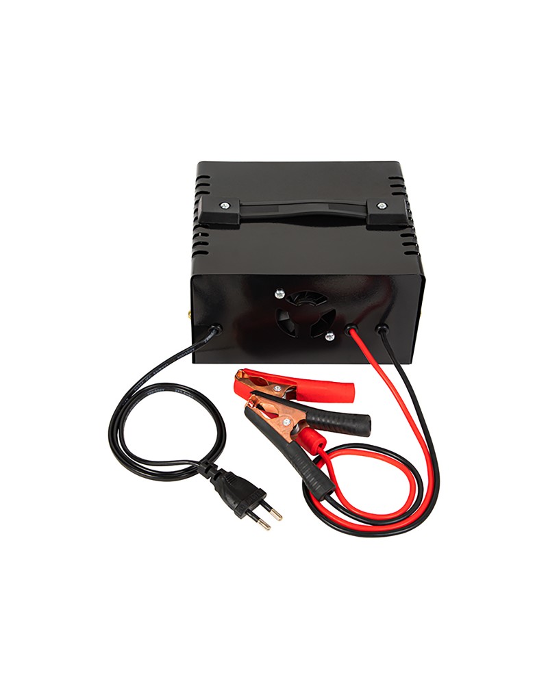 Prostownik został wyposażony w wentylator, który dba o prawidłową temperaturę pracy urządzenia oraz zapobiega przegrzaniu.