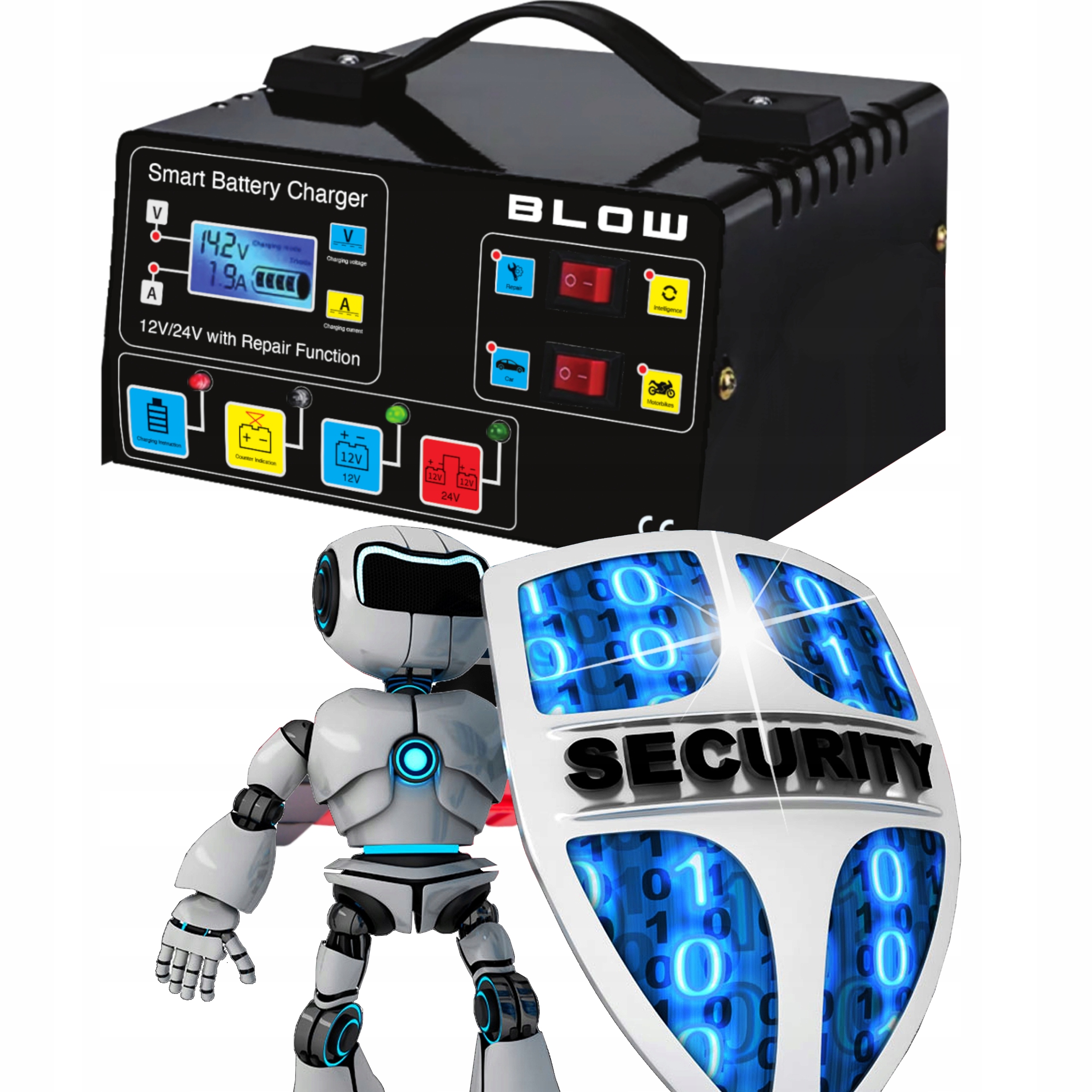 Prostownik został wyposażony w inteligentny mikroprocesor, który w razie powstania niepożądanych sytuacji mogących skutkować niebezpieczeństwem i zagrożeniem zdrowia i życia odcina moc.