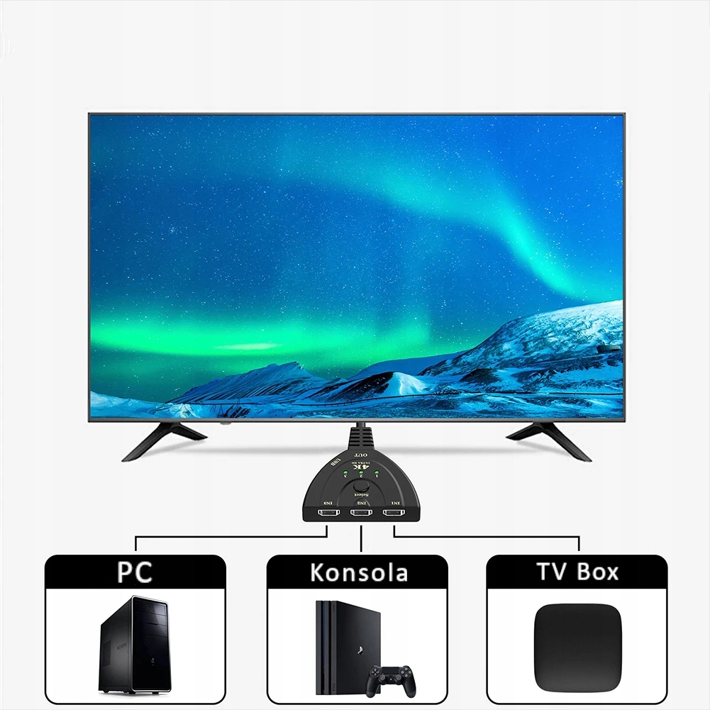 ⭐ROZGAŁĘŹNIK ROZDZIELACZ SPLITTER HUB SWITCH HDMI FULL HD 4K 3w1 3 PORTY⭐