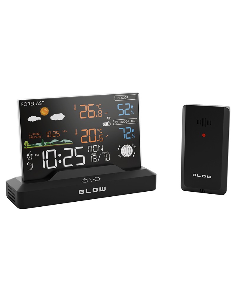 ✅ Oprócz podstawowych funkcji stacja BLOW WS104 oferuje barometr, prognozę pogody oraz funkcję alarmu. Informacje o aktualnym ciśnieniu atmosferycznym pozwalają na lepsze planowanie działań na świeżym powietrzu.