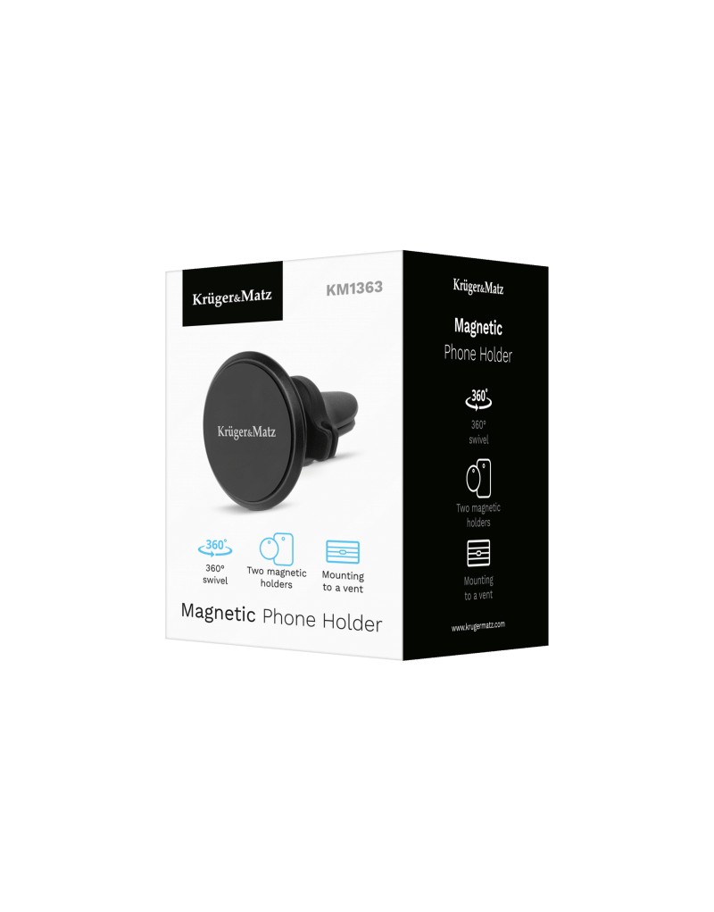 Uniwersalny uchwyt magnetyczny na telefon do samochodu Kruger&Matz posiada możliwość obrotu uchwytu o 360°. Dzięki temu możesz wygodnie dostosować ułożenie telefonu do Twoich potrzeb.