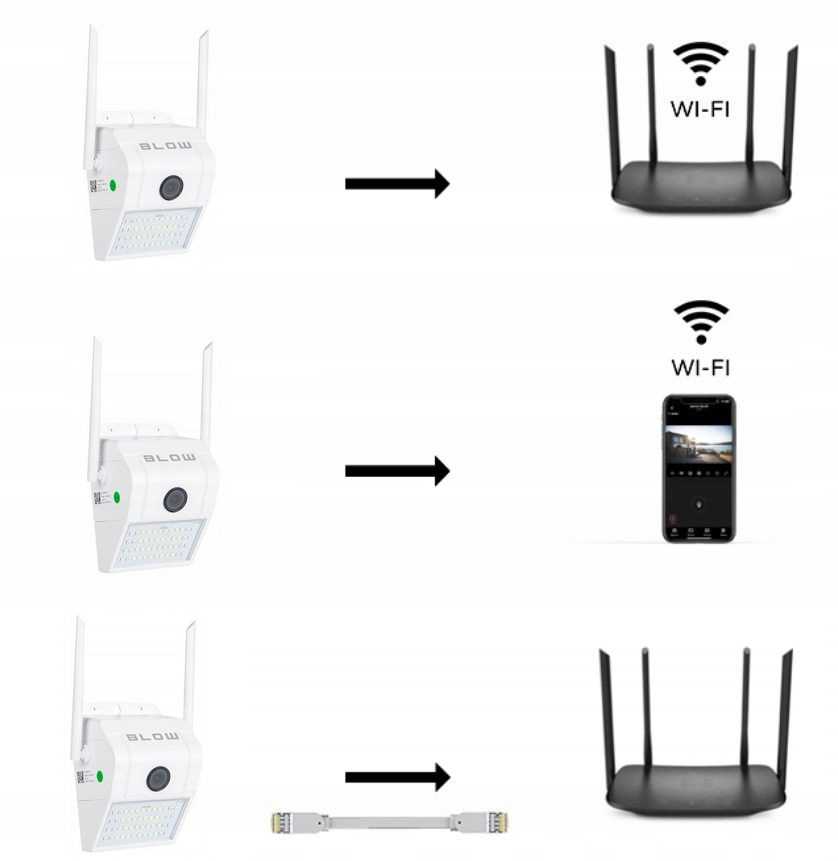 Są zwykłe kamery ....I jest Nowa kamera IP WIFI , BLOW - pełna doskonałych rozwiązań , dzięki którym mniejszym wysiłkiem będziesz cieszyć się z walorów użytkowych.Stylowy wygląd urządzenia sprawia , że czujesz się z nią dobrze od momentu , gdy pierwszy raz weźmiesz ją do ręki i zaczniesz używać .Wyposażona jest w precyzyjne podzespoły wysokiej jakości .Co więcej jest wyjątkowo łatwa w użyciu .Ma starannie przemyślany układ obsługi i proste menu w języku Polskim.Bezkonkurencyjna wielofunkcyjność , niepowtarzalny i nowoczesny design , bezkompromisowa i wysoka jakość wykonania oraz niezawodność za przystępną cenę pozostawiają daleko w tyle innych producentów tego typu urządzeń.Perfekcyjnie przemyślane w każdym detalu , charakteryzujące się praktycznymi rozwiązaniami , które zapewniają bezproblemowe korzystanie z urządzenia każdemu użytkownikowi Dzięki tym atutom jakie posiadają wszystkie produkty firmy BLOW kupujesz dokładnie to czego szukasz i potrzebujesz dla siebie i rodziny